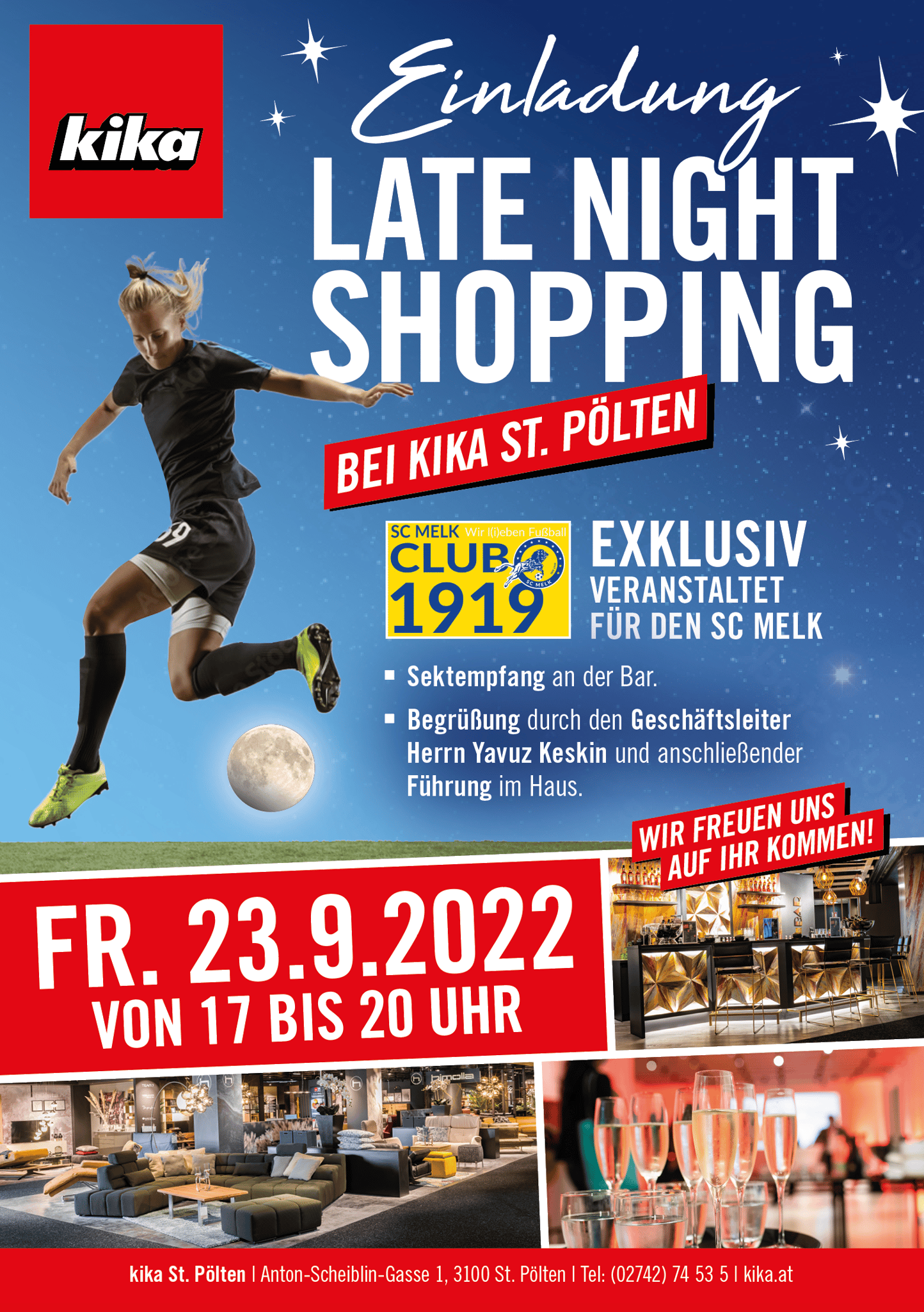Vielen Dank an die Fa. KIKA St. Pölten vertreten durch Herrn Geschäftsleiter Yavuz Keskin für den so freundlichen Empfang und die exklusive Führung durch das erst kürzlich so attraktiv gestaltete Möbelhaus! Neben Sonderrabatten dürfen wir uns auch über eine neue Attraktion für die Kantine freuen!