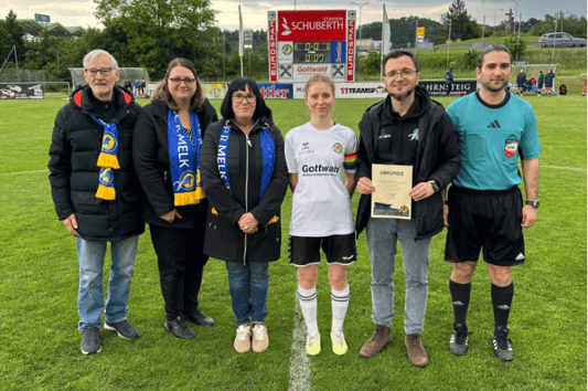 an die Fa. Immobilien MÖRTL Ges.m.b.H vertreten durch Herrn Geschäftsführer Wolfgang MÖRTL für die letzte Matchpatronanz beim Heimspiel unserer Frauenmannschaft am 23.4.2023 gegen Paudorf!