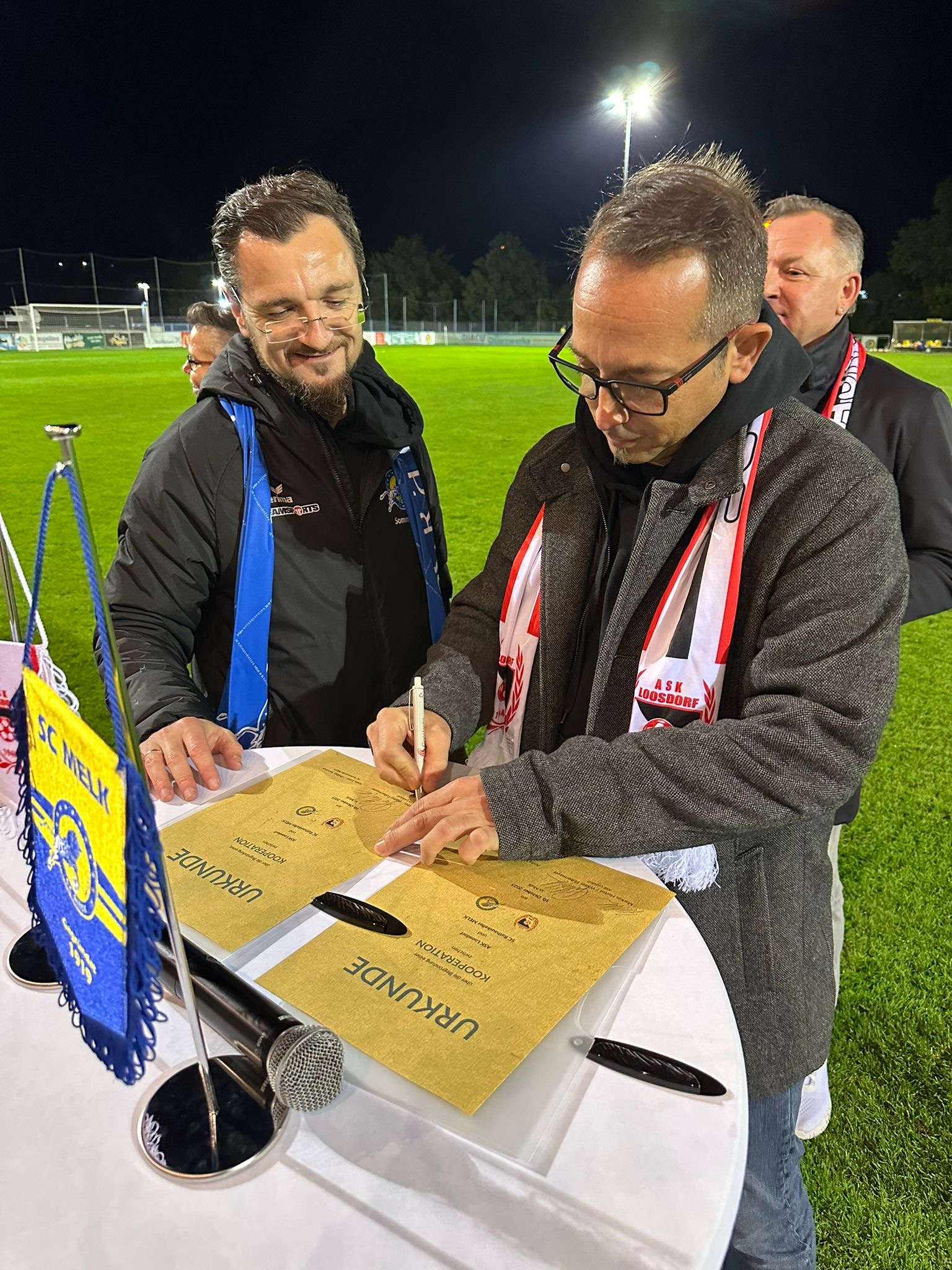 Im Rahmen des letzten AK NÖ Frauen Landesliga Heimspiels gegen die ASV Schrems Frauen am Freitag, 10. Oktober 2025 wurde die Kooperationsurkunde vor dem Heimspielpublikum im Schuberth Stadion in Melk feierlich unterzeichnet. Der ASK Loosdorf war dabei durch Obmann Walter Felbermayer und den sportlichen Leiter Frauen Markus Herbst vertreten. Für den SC Rathauskeller MELK unterzeichneten Obmann Mag. Philipp Sommer und die sportliche Leiterin Frauen Anita Ecker.
